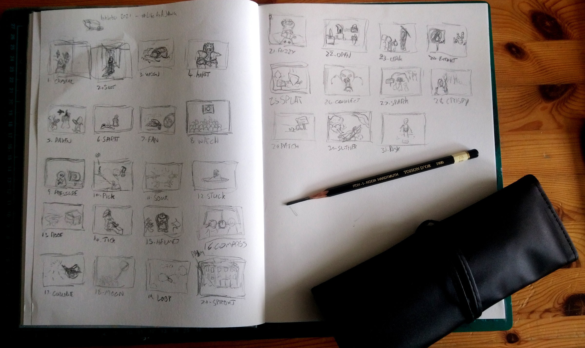I have treated the Life As A Jawa project s=in a similar way to a book illustration project; 31 stand-alone pieces that start with planning out the prompts and figuring out how I can tie them to my Jawa theme.