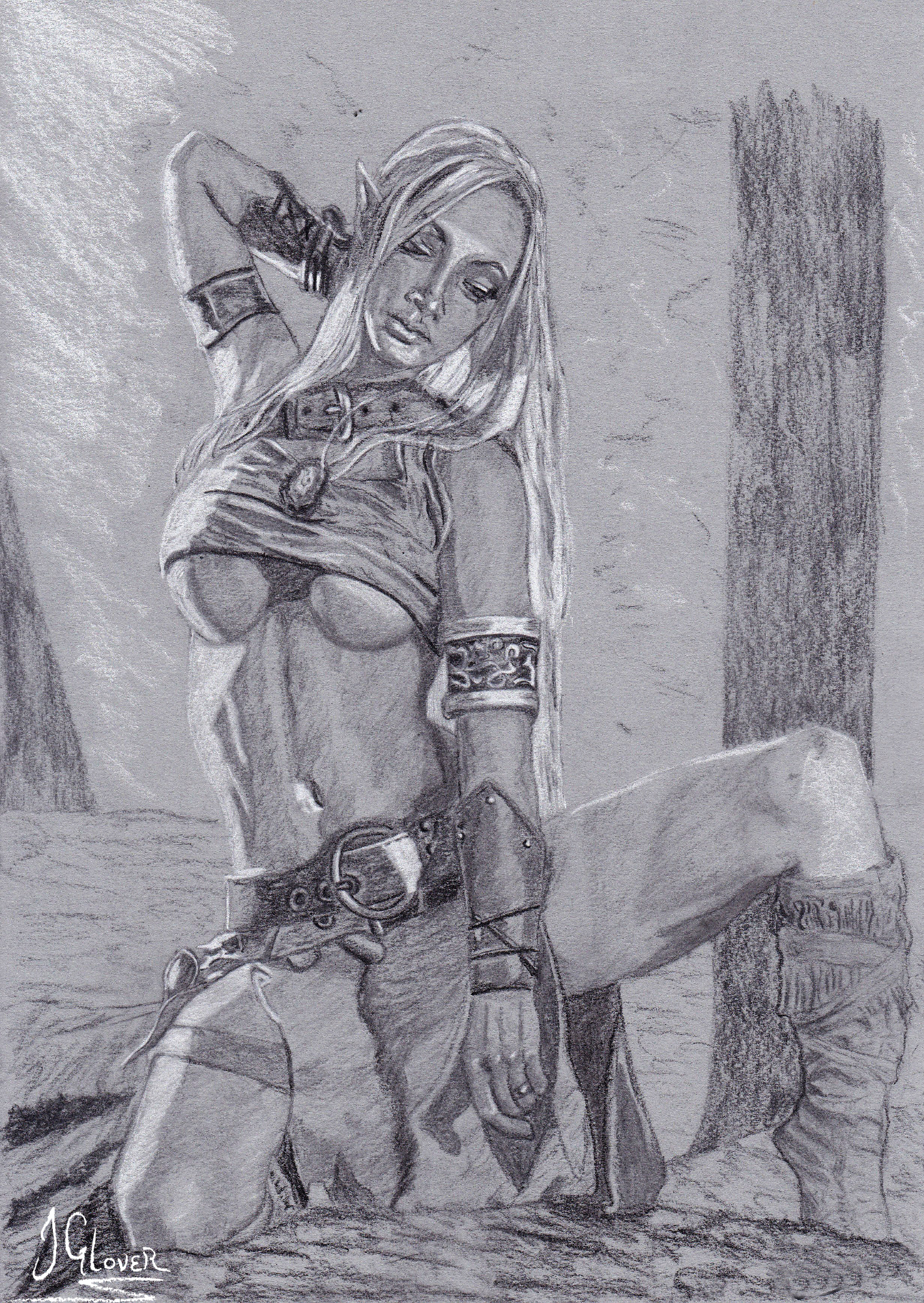Previous Image Next Image Female Elf Figure – Steamgirl Kato – JGlover Art – Charcoal Drawing Female Elf Figure Drawing – Charcoal