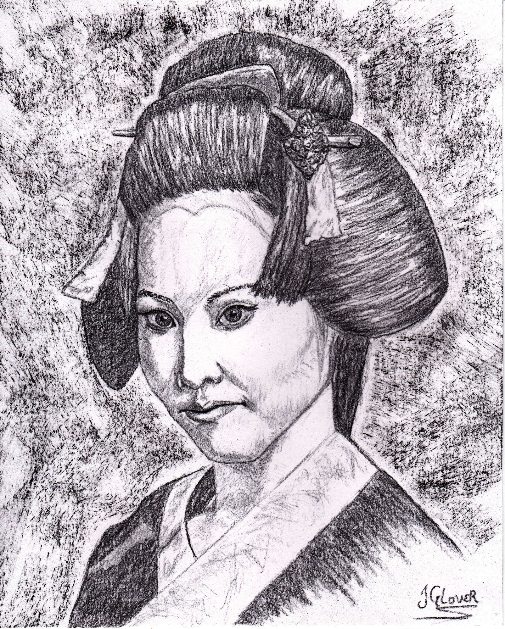 Previous Image Next Image Geisha Girl Portrait I – Charcoal Drawing – JGlover Art Geisha Girl Portrait I – Charcoal