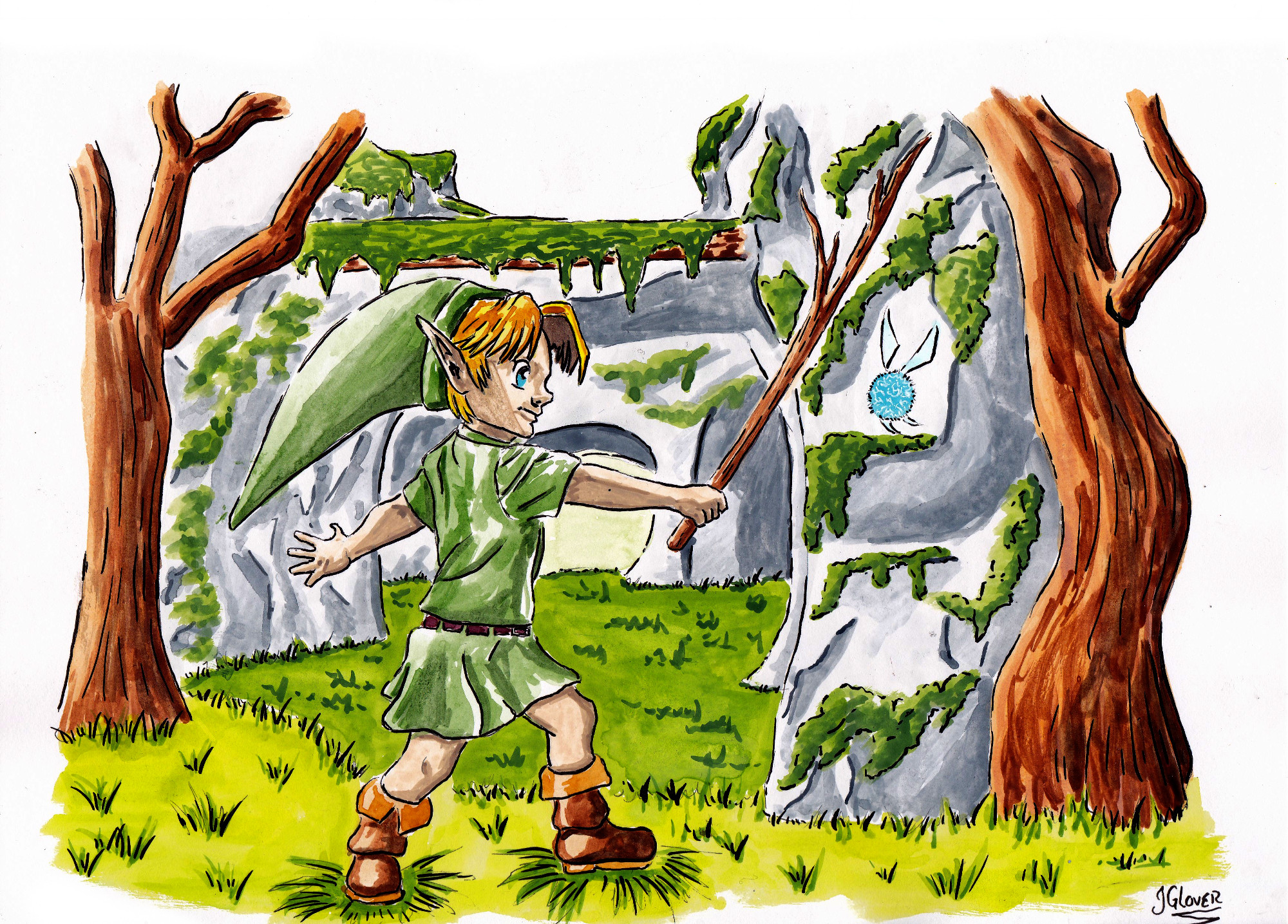 Previous Image Next Image Link Sword Training with Navi – Watercolour Sketch – Legend of Zelda – Illustration – JGlover Link Sword Training With Navi – Ink & Watercolour