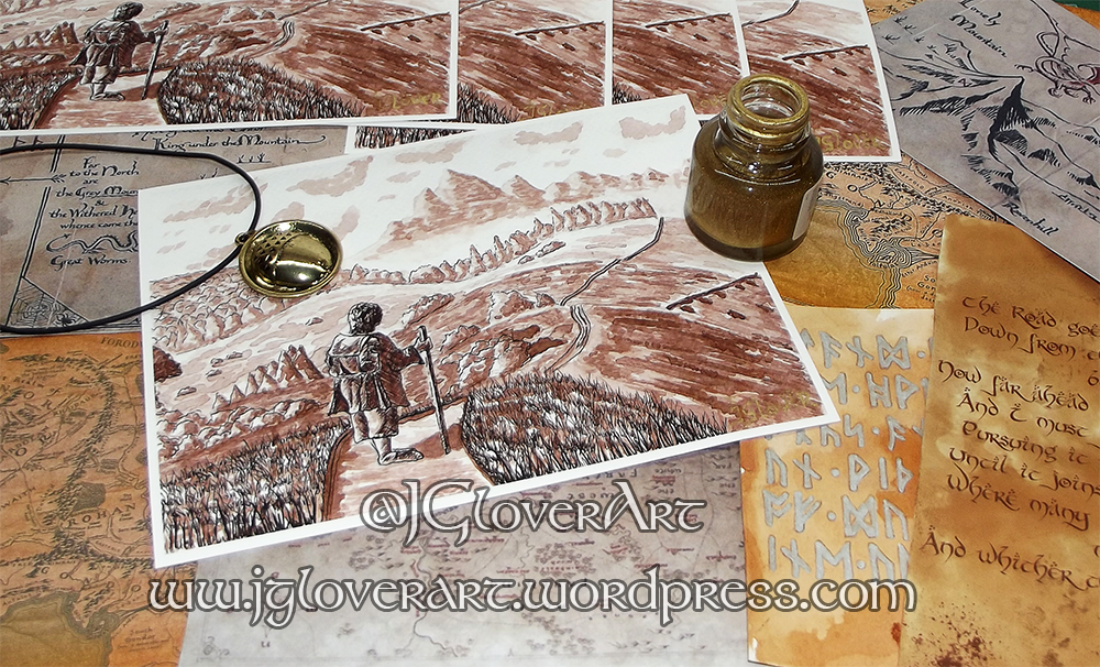 Road Goes Ever On Giclee Print – J Glover Art – Josh Glover – Lord of the rings – the hobbit – print – illustration – fantasy art – calligraphy gold writing