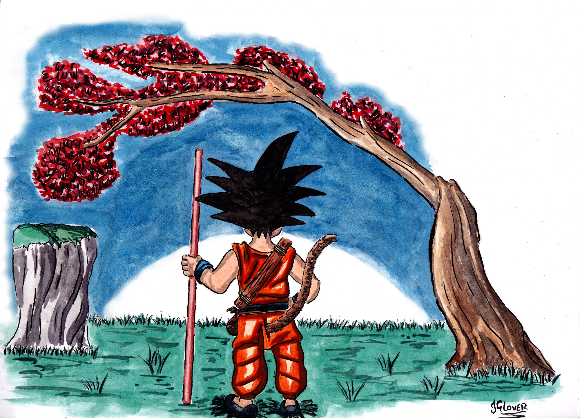 Previous Image Next Image Son Goku Awaiting The Full Moon – Watercolour Sketch – Dragon Ball – Illustration – JGlover Son Goku Awaiting The Full Moon – Ink & Watercolour